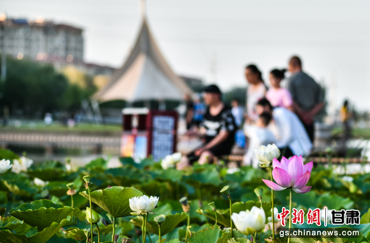 “接天蓮葉無窮碧,映日荷花別樣紅。”盛夏時節(jié),敦煌大漠綠洲持續(xù)高溫,鳴沙山下各種植物茁壯生長,黨河風(fēng)情線上的荷塘里荷花也競相綻放,紅的、白的,一朵朵,一簇簇,在微風(fēng)中搖曳,吸引眾多游人前來休閑避暑,賞荷納涼。王斌銀 攝