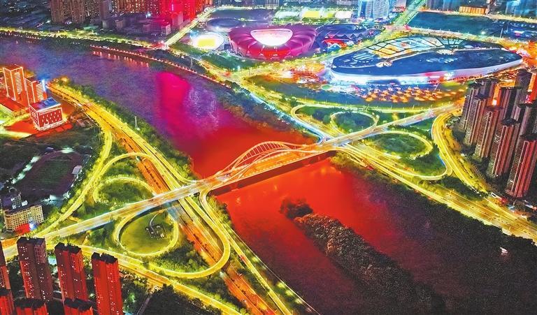夜幕下,中山橋與城市相映生輝。