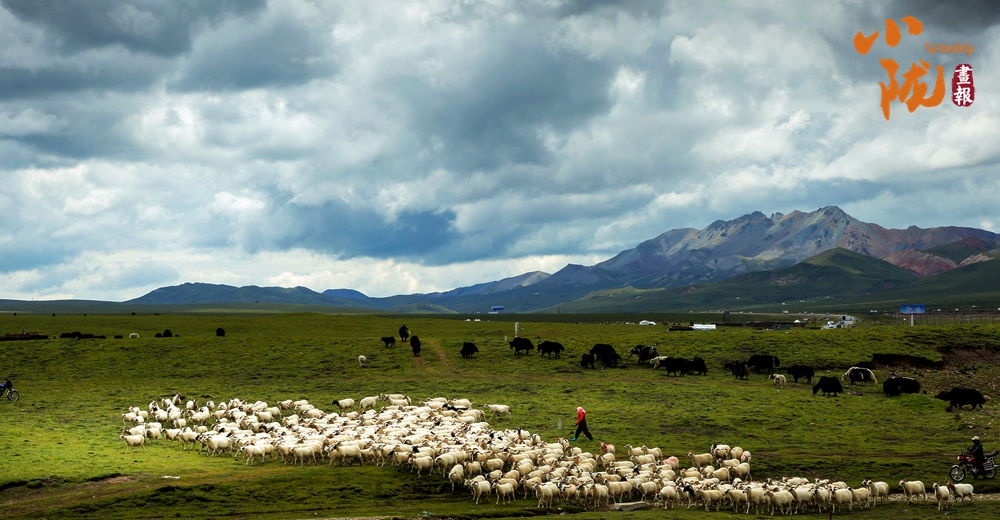“風吹草低見牛羊”的萬頃草原,牛羊悠悠,氈房點綴,呈現(xiàn)出一派安詳和順的西部風光。