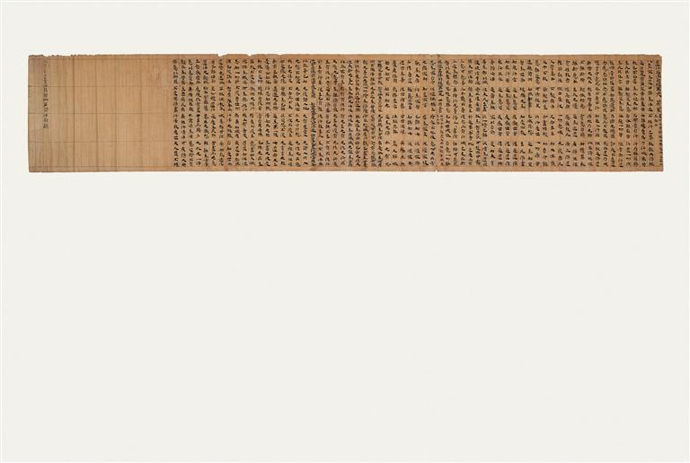 《法句經(jīng)》,前涼,卷軸裝寫(xiě)本,黃麻紙,出自敦煌莫高窟藏經(jīng)洞。以隸書(shū)繕抄《道行品法句經(jīng)》第三十八、《泥洹品法句經(jīng)》第三十九兩品經(jīng)文,前有裁切痕跡,題記“升平十二年(公元368年)沙彌凈明。咸安三年(公元373年)十月廿日沙彌凈明誦習(xí)法句起”,為沙彌凈明的兩次誦經(jīng)記錄。該文物是所知現(xiàn)存敦煌文獻(xiàn)中最早的經(jīng)卷寫(xiě)本,其書(shū)法藝術(shù)展現(xiàn)了“經(jīng)書(shū)體”楷法初期的特有風(fēng)姿。