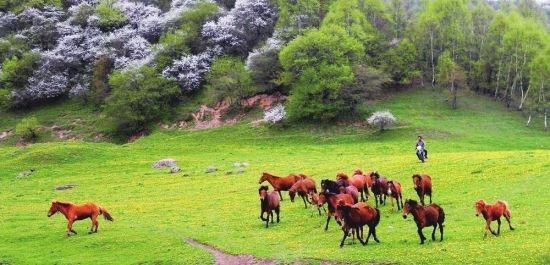 關(guān)山在很長一段時(shí)間一直是中國重要的牧馬之地。據(jù)史書記載,大將衛(wèi)青、霍去病北征匈奴,曾從關(guān)山征集戰(zhàn)馬14萬匹,足見當(dāng)時(shí)這里牧馬業(yè)的繁盛。然而現(xiàn)在,馬的蹤跡只是景區(qū)的點(diǎn)綴,要想看到萬馬奔騰的場面,要去河西走廊的山丹軍馬場。