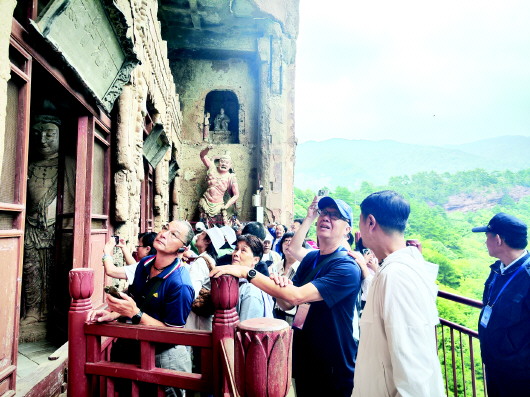活動(dòng)當(dāng)天,來(lái)自臺(tái)灣文博領(lǐng)域的專(zhuān)家學(xué)者一行,懷著對(duì)古老文化的敬仰與憧憬,在麥積山石窟感受石窟藝術(shù)的獨(dú)特魅力、在天水工業(yè)博物館探尋工業(yè)發(fā)展的歷史脈絡(luò)、在伏羲廟體悟中華始祖文化的博大精深、在天水市博物館領(lǐng)略豐富的歷史文物承載的歲月記憶、在天水古城品味古色古香的韻味與風(fēng)情……一系列豐富多彩的文化交流活動(dòng),讓他們近距離感受到了古城天水的風(fēng)景名勝、文化遺產(chǎn)保護(hù)傳承及山川風(fēng)物。