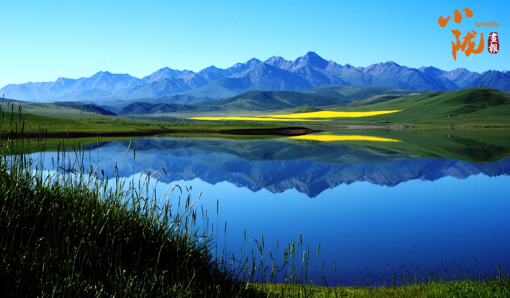 西大河水庫碧亮賜透,宛若草地上鑲嵌的藍寶石,遠處的牛羊、油菜花和壯麗的祁連山倒影水中,像一幅水彩畫。