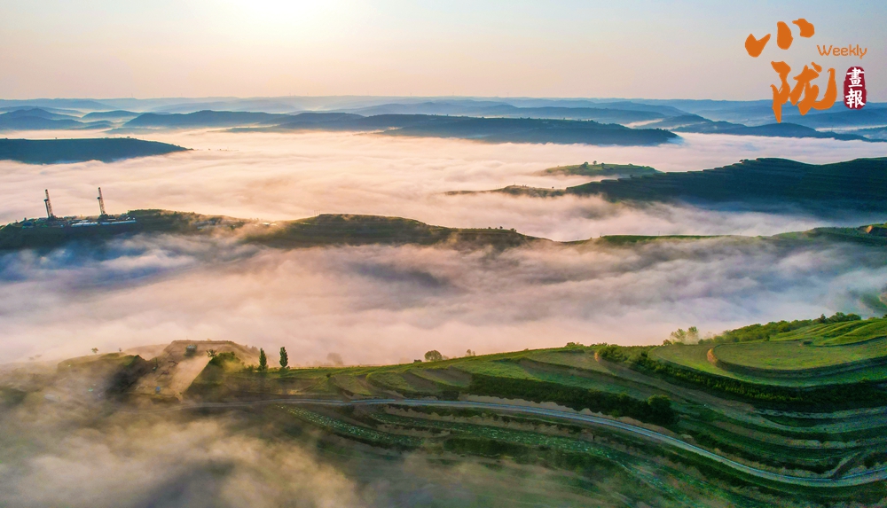 傍晚,空中泛起淡淡云霧環(huán)繞在溝壑之間,呈現(xiàn)出華池別樣的霧海景觀,遠(yuǎn)處一架架抽油機(jī)在上下舞動,“舞姿”靈動而優(yōu)美。