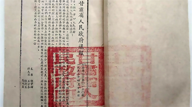 1950年1月8日,鄧寶珊正式就任甘肅省人民政府主席和省長。他感到責任重大,也對甘肅的發(fā)展充滿了希望。他經(jīng)常到下面體察民情,足跡遍布全省的各個縣。在不能通車的偏遠地方,就是步行幾小時也要走到下面的村縣。1952年3月2日,鄧寶珊主席一行從蘭州出發(fā),對武威和酒泉兩個專區(qū)展開視察,歷時一個多月,走訪了永登、古浪、山丹、張掖、敦煌等13個縣。山丹縣1950年劃歸武威專區(qū),1955年后復歸張掖專區(qū)。