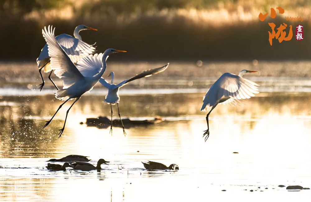 湖中的白鷺翩翩起舞,嬉鬧翻飛,歡快鳴叫,有的停落湖岸,有的游向湖心,有的翻飛空中,為游客帶來無盡的歡樂??带B兒們嬉鬧,仿佛回到童年時代。自由、自在、生機無限,讓每個人感受到無窮的生命力量。
