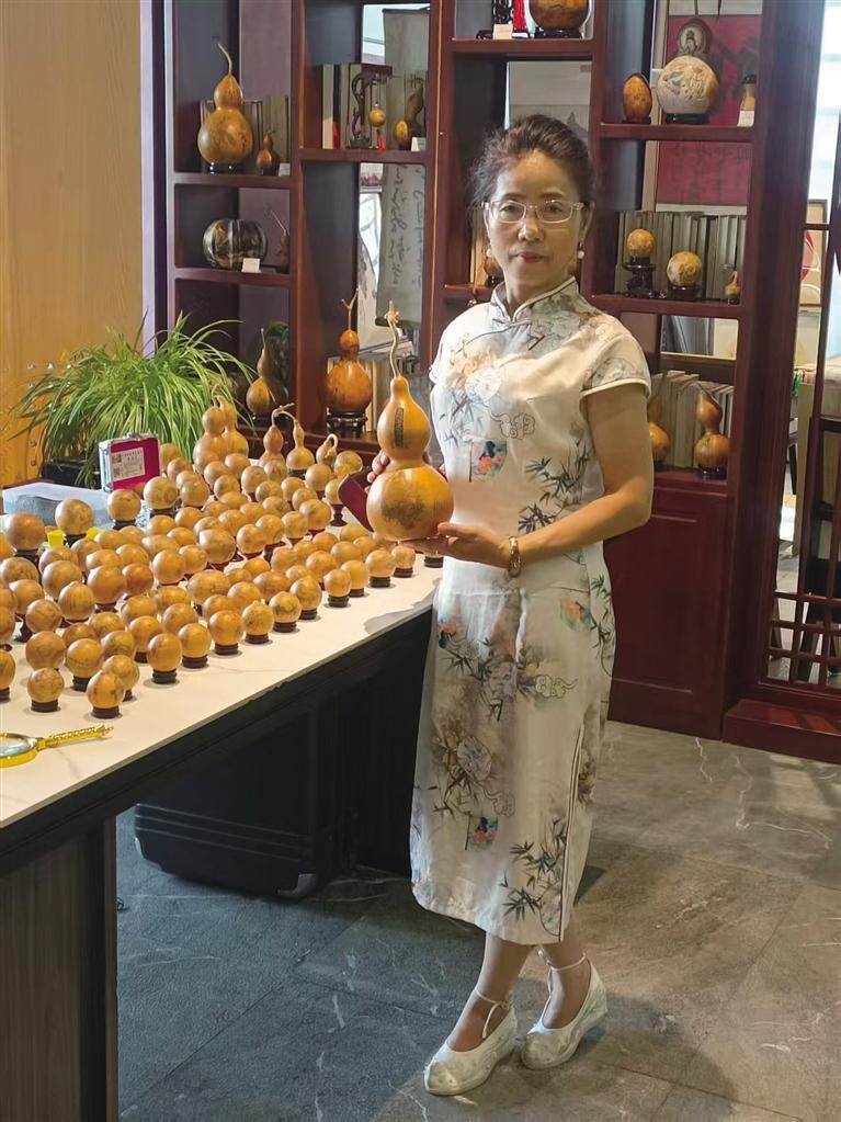 “我啊,從小就是泡在雕刻聲里長大的。”談起與葫蘆雕刻的緣分,齊鴻芬眼中漾起溫潤的光。父親與兄長手中刻刀與葫蘆輕觸的沙沙聲,是她童年最熟悉的旋律。耳濡目染間,方寸葫蘆上的奇妙世界,早已在年幼的心田種下藝術(shù)的種子,從此與刻刀、葫蘆結(jié)下不解之緣。