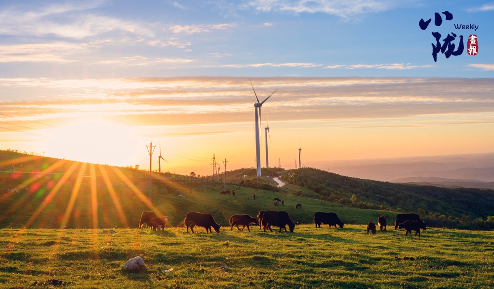廣闊的牧場(chǎng),一望無(wú)垠。綠油油的牧草覆蓋整片天地,宛如一片綠色的海洋。草原上游走的牛羊,與天空浮云、遠(yuǎn)景的群山、矗立的風(fēng)力發(fā)電機(jī)交相輝映,極目遠(yuǎn)望、蔚為壯觀,構(gòu)成關(guān)山古道一道靚麗風(fēng)景線。