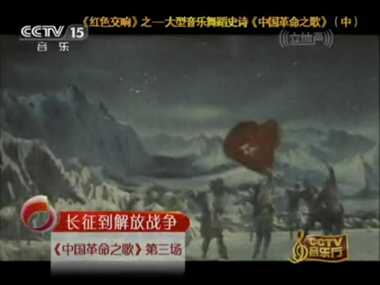 而在音樂與舞蹈的融合道路上,創(chuàng)作于1984年的大型音樂舞蹈史詩《中國革命之歌》,邁向了一種更為宏大的藝術(shù)形態(tài)。作品融舞蹈、音樂、朗誦與舞臺視覺于一體,以全景敘事回溯革命征程。其中第三時期的片段《紅軍不怕遠(yuǎn)征難》,以“雪山紅星”為核心意象,在交響樂、合唱與舞蹈的交織中,唱響了那段艱苦卓絕的歷程。