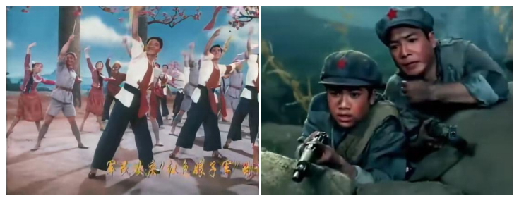 大眾傳播時代,中央電視臺的轉(zhuǎn)播率先將《紅軍不怕遠(yuǎn)征難》從劇場送入千家萬戶。1985年,舞蹈被攝制成電影并全國公映,從機關(guān)單位到中小學(xué)校,組織化的集體觀看使其從即時性的舞臺呈現(xiàn),延伸為可供反復(fù)欣賞的歷史影像。與此同時,舞蹈中那些震撼人心的畫面與造型,被凝固定格為經(jīng)典圖像,廣泛進入教材、讀物等宣傳載體,從流動的舞臺藝術(shù)轉(zhuǎn)化為深入人心的視覺符號。作品中那些簡潔而富有象征意義的舞蹈語言,也成為全國各地文藝團體與學(xué)校學(xué)習(xí)、演繹的藍(lán)本,在基層舞臺上被不斷復(fù)現(xiàn)與傳承。