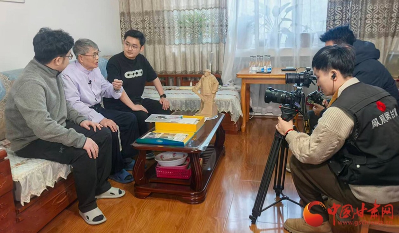 兩度擔任鐵人秘書的孫寶范(左二)與孫子、外孫接受鳳凰網(wǎng)甘肅頻道采訪。 陳曉斌/攝