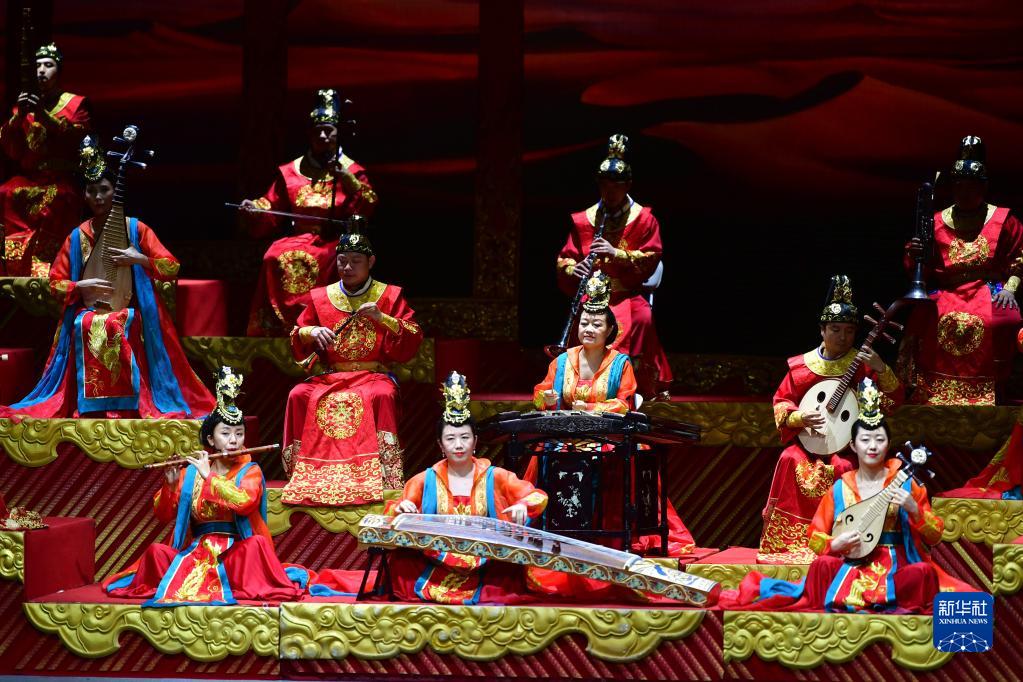 演員在敦煌大劇院表演大型民族器樂劇《玄奘西行》(9月23日攝)。新華社記者 陳斌 攝