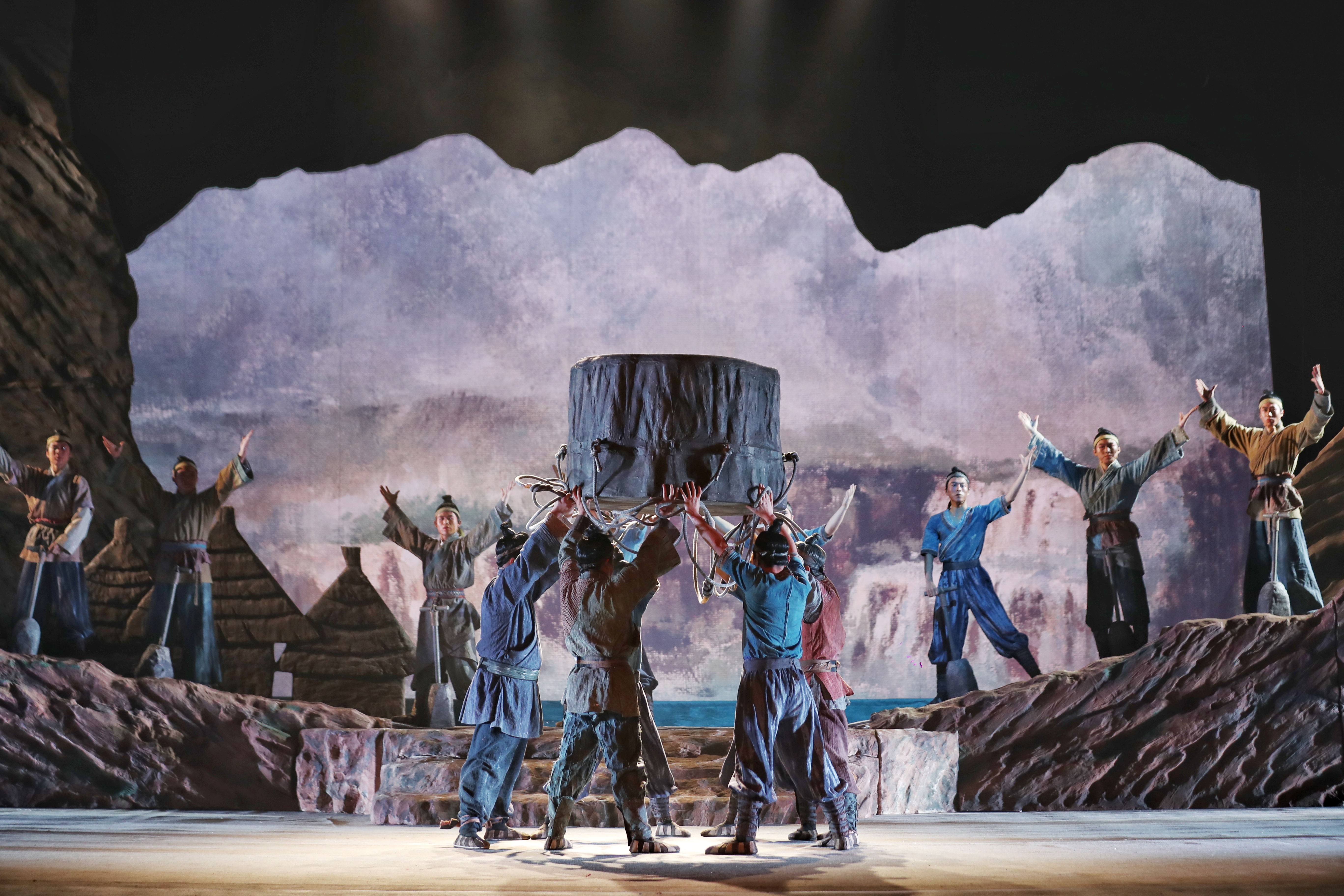 史書(shū)《尚書(shū)·禹貢》記載,大禹治水“導(dǎo)河于積石”。據(jù)考證,這里的“積石”就是甘肅省臨夏州積石山。在甘肅省文化和旅游廳全程指導(dǎo)下,甘肅省隴劇院歷時(shí)兩年精心籌備,主創(chuàng)團(tuán)隊(duì)多次赴積石山縣采風(fēng),先后十六次易稿完成劇本創(chuàng)作。全體劇組人員本著“宏大的主題和民族精神高度統(tǒng)一,黃河文化和地域特色高度統(tǒng)一,呈現(xiàn)內(nèi)容和藝術(shù)樣式高度統(tǒng)一,立意挖掘和昭示未來(lái)高度統(tǒng)一”的創(chuàng)作要求,歷經(jīng)四個(gè)多月的緊張排練,將“大禹治水源頭”故事搬上舞臺(tái)。