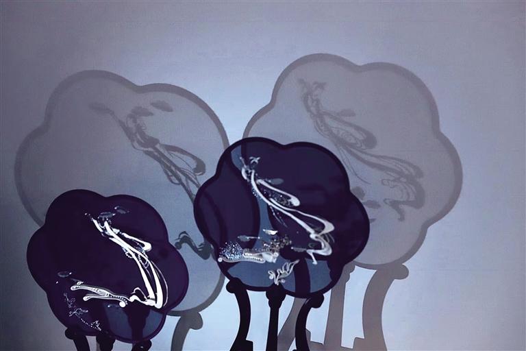 2019年劉瑤手繡的一組《敦煌手姿》扇面問(wèn)世,黑色的生絹之上,用金線刺繡出敦煌手姿的婀娜曼妙。劉瑤在創(chuàng)作中,用線條貫穿每一個(gè)細(xì)節(jié),極盡傳情達(dá)意,用針與線賦予了手姿柔美與力量。也正是憑借著這一組精美絕倫的“敦煌風(fēng)”扇面,劉瑤叩開(kāi)了這個(gè)項(xiàng)目的大門(mén),成為了甘肅省唯一的入選者。