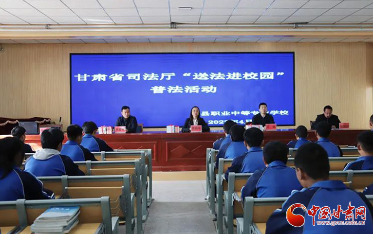 中國甘肅網(wǎng)4月27日訊(本網(wǎng)記者 李紅軍)為進一步提升廣大青少年法治素養(yǎng)和法治意識,近日,甘肅省司法廳在漳縣開展“送法進校園”普法志愿服務(wù)活動,為漳縣職業(yè)中等專業(yè)學(xué)校送去憲法、民法典等系列普法圖書及普法宣傳物品,現(xiàn)場開展了專題法治講座,學(xué)校200余名師生代表參加活動。
