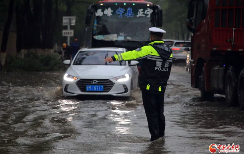 7月15日18時,鎮(zhèn)原縣鎮(zhèn)北公路中盛公司路段積水深達80公分,一輛轎車熄火被困,車門無法打開,車內一名癲癇患者病情發(fā)作,鎮(zhèn)原縣巡邏民警及時發(fā)現(xiàn),成功救出車內被困人員并送醫(yī),交警、治安民警聯(lián)合消防隊員迅速實施道路排水、恢復交通秩序。
