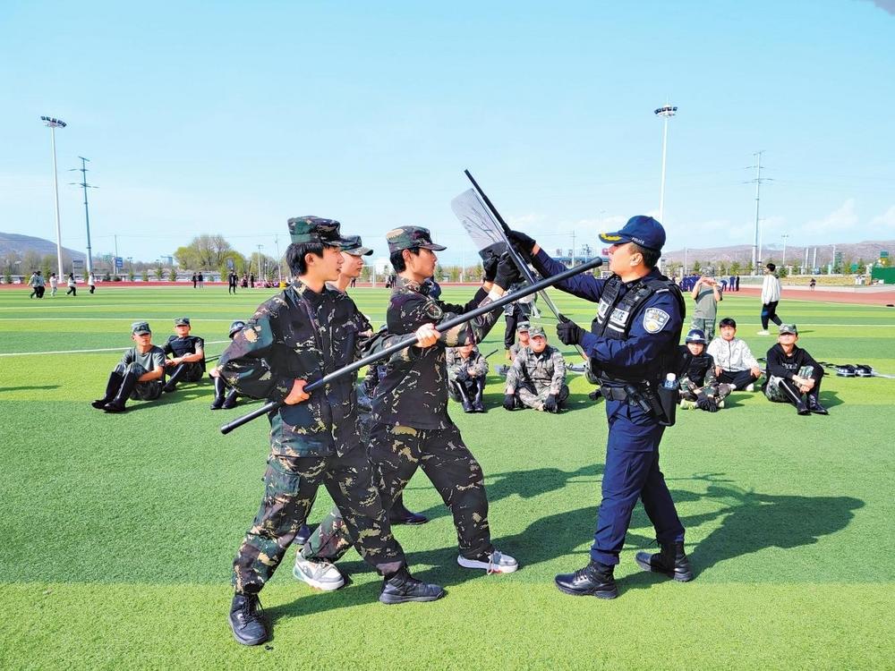 公安民警示范演練反恐防暴技能。4月11日,臨洮縣公安局組織警務(wù)實戰(zhàn)教官到定西市職業(yè)技術(shù)學校開展反恐防暴演練培訓。新甘肅·甘肅法治報通訊員李鴻昌攝