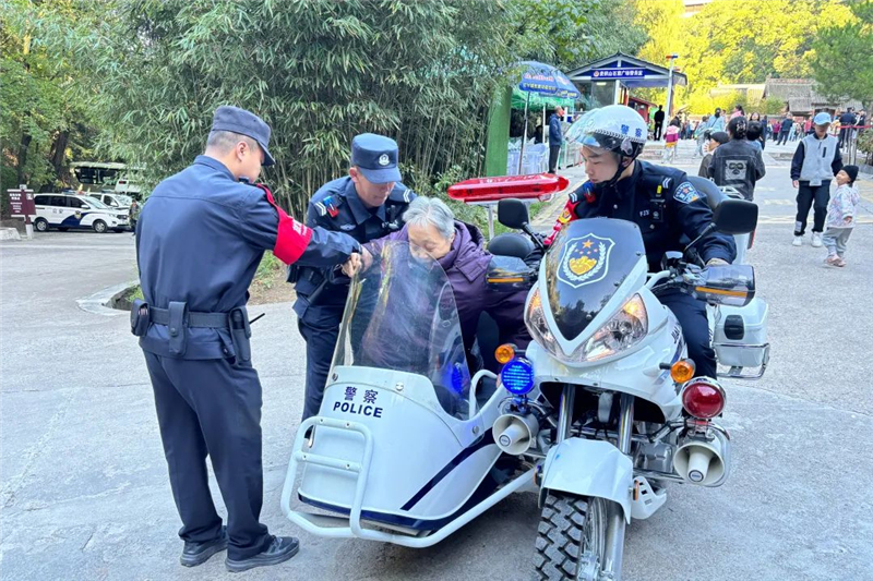 10月2日,一名陜西渭南游客向麥積山大景區(qū)派出所求助說,其母親由于年紀(jì)較大,已經(jīng)走不動(dòng)了,需下山前往酒店休息,希望民警幫忙聯(lián)系車輛。隨后,旅游警察用警用摩托車送老人下山,安全到達(dá)山下停車場。