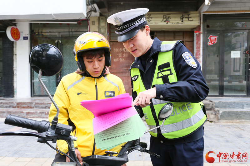平?jīng)觯横轻冀痪癁橥赓u小哥“配送”交通安全餐