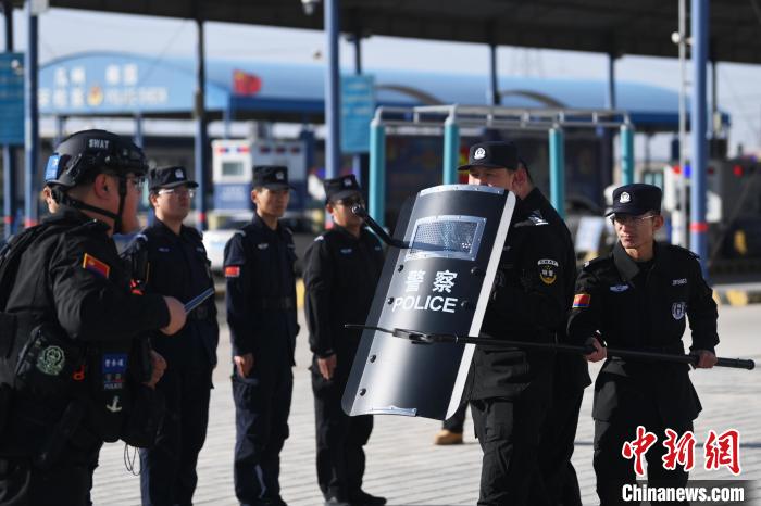 1月7日,甘肅省酒泉市瓜州縣公安局柳園公安檢查站內(nèi),執(zhí)勤民輔警進(jìn)行日常演練。李亞龍 攝