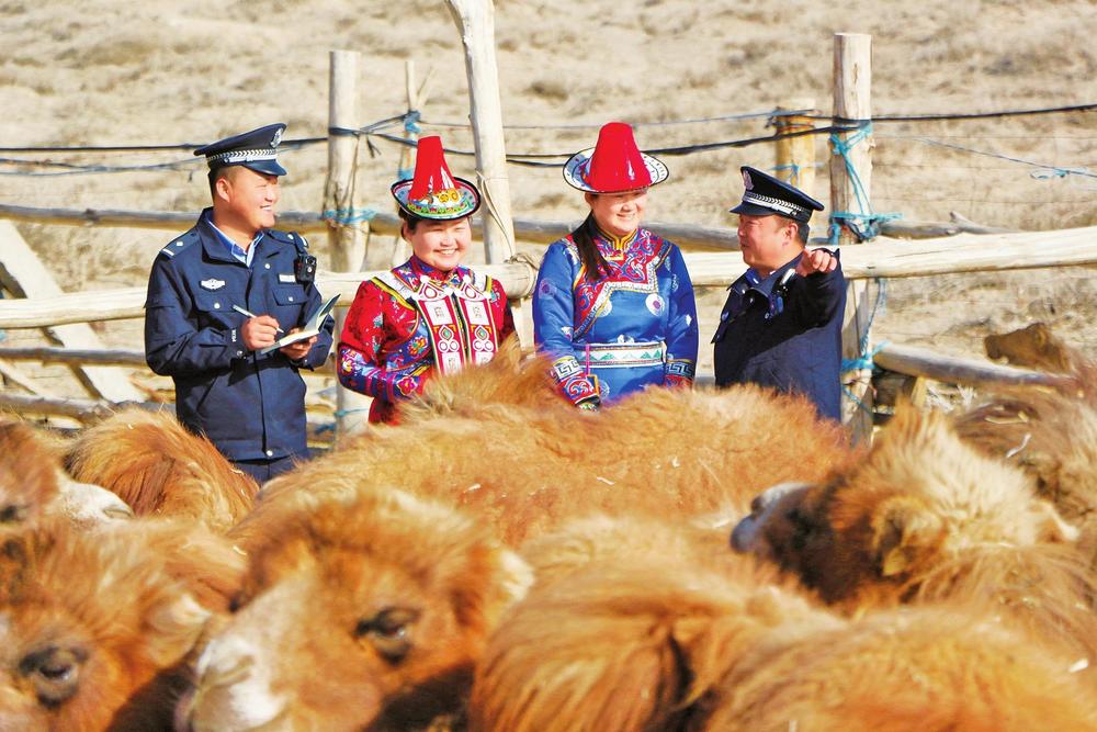2月21日,肅南縣公安局明花派出所民輔警走進牧區(qū),引導(dǎo)牧民安裝“國家反詐中心”App,并提醒牧民謹防電信網(wǎng)絡(luò)詐騙。新甘肅·甘肅法治報通訊員李志鵬攝