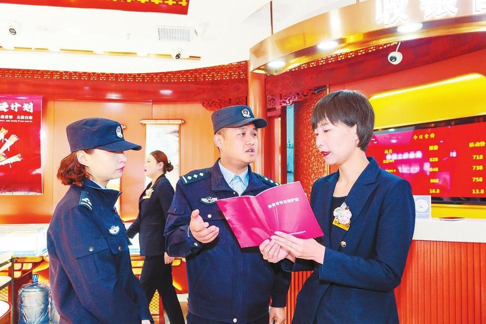 3月14日,蘭州市公安局七里河分局組織多個(gè)派出所民輔警走進(jìn)商超、餐飲、副食品店等營(yíng)業(yè)場(chǎng)所,開展“3·15”消費(fèi)者權(quán)益日普法宣傳和專項(xiàng)檢查,倡導(dǎo)商家誠(chéng)實(shí)守信合法經(jīng)營(yíng),為消費(fèi)者營(yíng)造安全、放心的消費(fèi)環(huán)境。 新甘肅·甘肅法治報(bào)記者張瑞軍攝