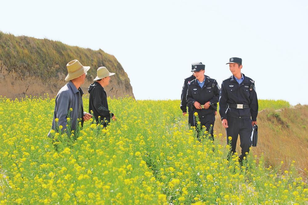 民警田間地頭走訪群眾。5月15日,定西市公安局安定分局組織民輔警開展社情民意大走訪,面對面傾聽群眾呼聲、征求群眾意見,解決實際困難,宣講安全知識,不斷增強(qiáng)人民群眾的獲得感、幸福感、安全感。  新甘肅·甘肅法治報通訊員楊永剛攝