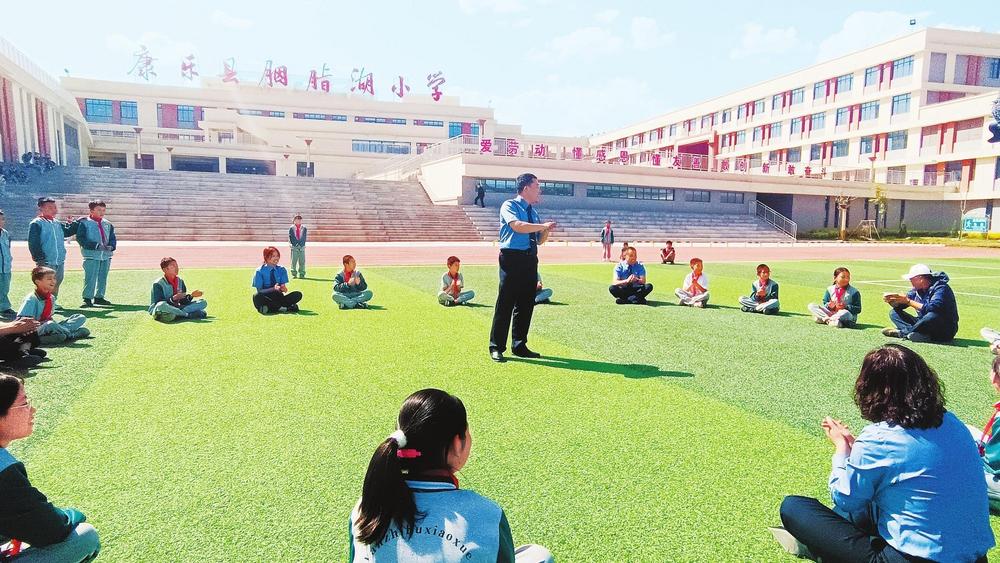 干警和孩子們游戲互動(dòng)。近日,康樂縣檢察院組織干警走進(jìn)康樂縣胭脂湖小學(xué),開展法治進(jìn)校園宣講活動(dòng),為未成年人健康成長(zhǎng)構(gòu)筑堅(jiān)實(shí)司法屏障,用心用情守護(hù)“少年的你”。 新甘肅·甘肅法治報(bào)記者陳孝志攝