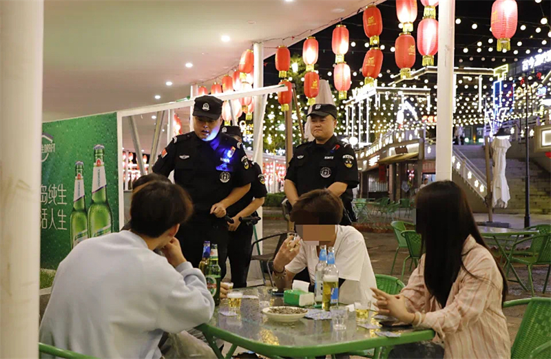 與此同時,武都最具“煙火氣”的夜市區(qū)域,也迎來了特別的守護(hù)者。熱鬧的萬象街景區(qū)入口,警車格外醒目。7月31日晚,特巡警馬寧和同事正對燒烤攤前喝酒的年輕人做安全宣講。“喝了幾杯沒事,但騎車不安全,叫個代駕吧,安全第一。”燒烤攤張老板說:“以前收攤晚,總擔(dān)心有人鬧事?,F(xiàn)在警察就在旁邊守著,處理糾紛又快又公道,心里特別有底。”數(shù)據(jù)顯示,這支夜間警力已快速調(diào)解酒后口角、消費(fèi)糾紛47起,發(fā)放防詐宣傳單3200余份,有效維護(hù)了夜市經(jīng)濟(jì)的良好秩序。