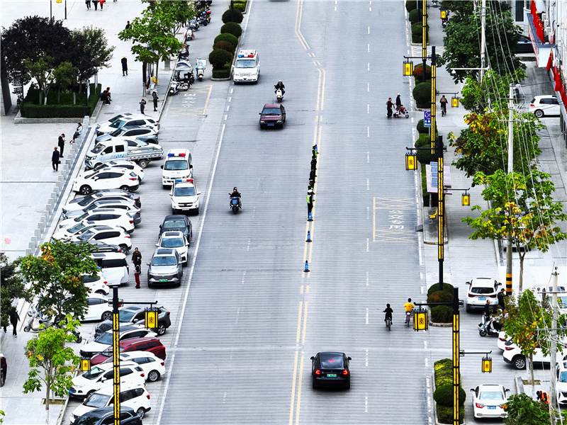 在熙攘的鹽井古街,巡邏民警的身影融入如織的游人;踏入寧靜的秦皇湖景區(qū),執(zhí)勤民警的腳步輕撫過每一條林間小徑;穿梭在節(jié)日的秦人廣場(chǎng),閃爍的警燈與萬家燈火交相輝映——這升騰流動(dòng)的“煙火人間”背后,總有一抹“藏藍(lán)”在默默守護(hù)。