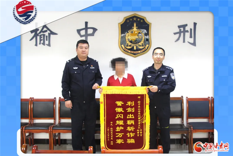 中國甘肅網(wǎng)11月3日訊(西北角·中國甘肅網(wǎng)記者 程?。┙?,蘭州市的張女士將一面印有“利劍出鞘斬詐騙 警徽閃耀護萬家”的錦旗,送到了榆中縣公安局刑警大隊辦案民警手中。