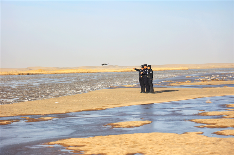▲金塔縣公安局城關(guān)派出所民輔警深入轄區(qū)生態(tài)保護區(qū)開展車巡、步巡、無人機巡,構(gòu)建起全域覆蓋、空地聯(lián)動、精準(zhǔn)高效的生態(tài)安全防控體系,為織密生態(tài)保護網(wǎng)保駕護航。(葛萬譽 攝)