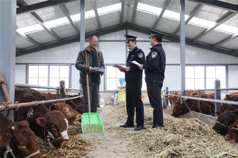 ▲平?jīng)鍪泄簿轴轻挤志终优沙鏊褫o警深入轄區(qū)紅牛養(yǎng)殖基地,開展針對性普法宣傳活動,進一步筑牢轄區(qū)紅牛養(yǎng)殖產(chǎn)業(yè)法治防線,提升廣大養(yǎng)殖戶的法律意識。(張鏡鏡 攝)