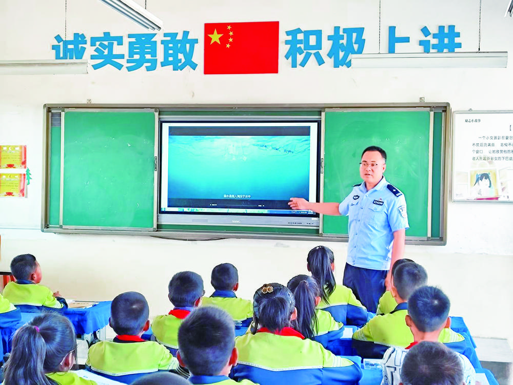 張建平向?qū)W生們宣講防溺水安全知識(shí)。