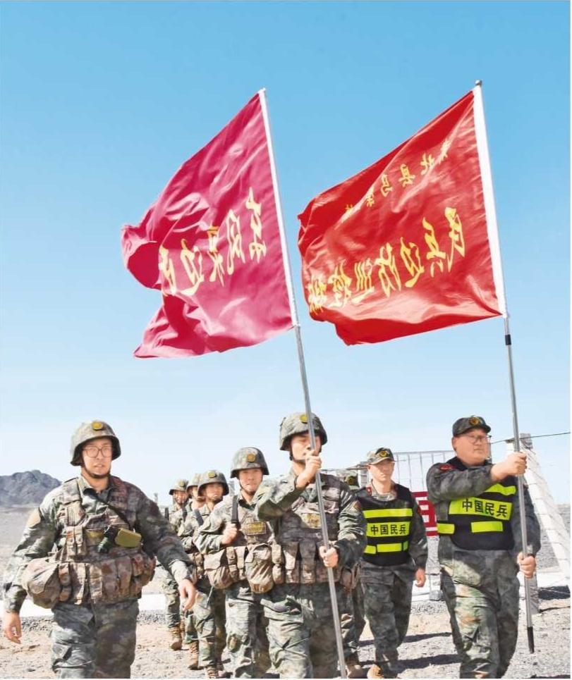 肅北縣馬鬃山鎮(zhèn)民兵邊防巡控排和邊防部隊(duì)共同巡邏邊境(2025年9月19日拍攝)。