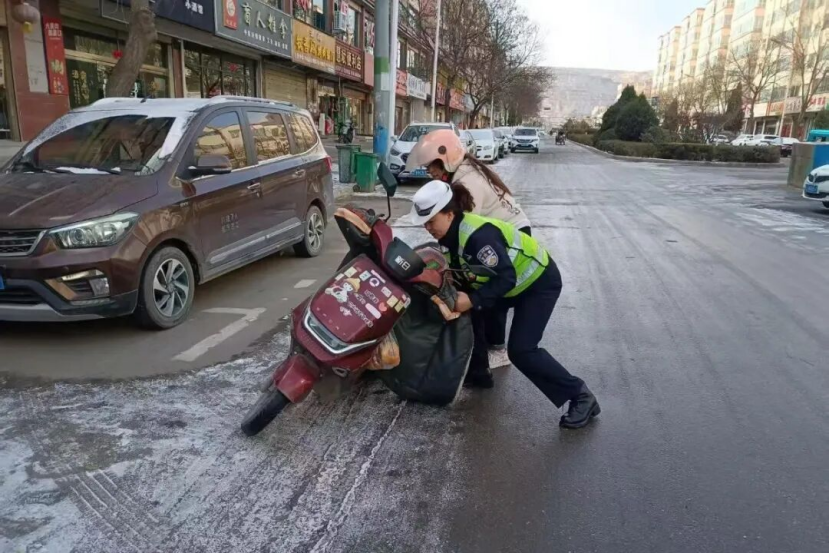 雨雪寒潮之中,定西公安交警始終堅(jiān)守崗位,在疏堵保暢的同時(shí),化身“暖心衛(wèi)士”,主動(dòng)為受困群眾和車輛提供貼心救助。面對(duì)積雪路面車輛打滑、拋錨等突發(fā)情況,民輔警們不畏嚴(yán)寒,俯身推車、幫助安裝防滑鏈、排查車輛故障;針對(duì)出行不便的老人、學(xué)生等群體,主動(dòng)攙扶護(hù)送,耐心解答指引、提供應(yīng)急幫助。一幕幕暖心瞬間在雨雪街頭不斷上演,贏得過(guò)往群眾紛紛點(diǎn)贊。