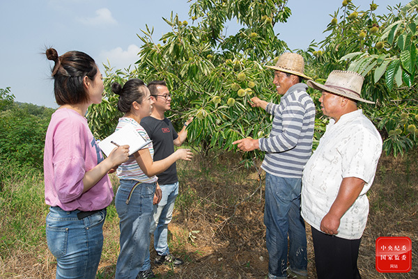 安徽省各級(jí)紀(jì)檢監(jiān)察機(jī)關(guān)緊緊圍繞決戰(zhàn)脫貧攻堅(jiān)做深做實(shí)監(jiān)督工作,加大群眾身邊腐敗和作風(fēng)問(wèn)題治理力度。圖為淮南市八公山區(qū)紀(jì)檢監(jiān)察干部深入板栗園區(qū),向種植戶了解惠民政策落實(shí)情況。倪慧 攝
