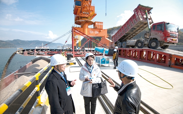 重慶市萬州區(qū)紀(jì)委監(jiān)委圍繞推動成渝地區(qū)雙城經(jīng)濟(jì)圈建設(shè)跟進(jìn)監(jiān)督,保障重點(diǎn)工程順利推進(jìn)、廉潔高效。圖為萬州區(qū)紀(jì)檢監(jiān)察干部深入重點(diǎn)水運(yùn)項(xiàng)目新田港現(xiàn)場了解情況。 攝影/冉孟軍(萬州區(qū)紀(jì)委監(jiān)委干部)