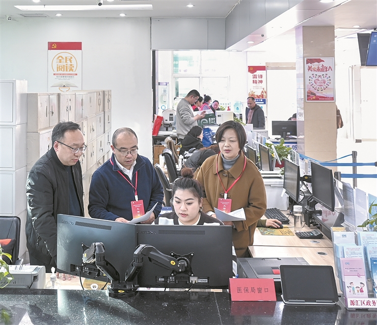 河南省漯河市源匯區(qū)紀委監(jiān)委聚焦醫(yī)保基金安全運行等關鍵環(huán)節(jié)開展專項整治,督促主管部門著力整治醫(yī)保基金管理中虛報冒領、騙取套取等違紀違法行為,嚴肅查處監(jiān)管失職失責及背后的不正之風和腐敗問題。圖為近日,該區(qū)紀委監(jiān)委工作人員到區(qū)行政服務中心醫(yī)保局窗口走訪核實相關情況。尤亞輝 攝