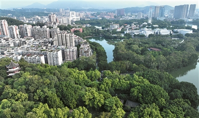福建省福州市濕地資源豐富,全市濕地面積19.42萬公頃,濕地率15.14%,約占福建省濕地面積的三分之一,位居全國(guó)濱海城市前列。圖為近日拍攝的福州西湖——左海濕地公園沿岸城市風(fēng)光。 新華社記者 魏培全 攝