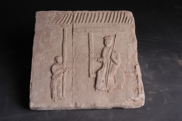 宋代??v30.2厘米,橫30.7厘米,厚3厘米。征集。磚呈長(zhǎng)方形,青灰色,通過(guò)模印工藝展示了屋檐下一婦人坐于窗臺(tái)前,給一端物的幼子訓(xùn)話的場(chǎng)景,是研究宋代社會(huì)生活、家庭倫理及畫像磚藝術(shù)的珍貴實(shí)物資料。