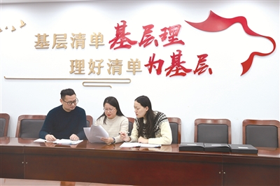 全面建立鄉(xiāng)鎮(zhèn)(街道)履職事項清單是加強(qiáng)基層治理體系和治理能力現(xiàn)代化建設(shè)的基礎(chǔ)性制度安排,是為基層減負(fù)、破解基層治理“小馬拉大車”突出問題的重要舉措。目前,全面建立鄉(xiāng)鎮(zhèn)(街道)履職事項清單工作取得明顯成效。圖為江蘇省張家港市南豐鎮(zhèn)工作人員研究落實權(quán)責(zé)事項。 羅燕 攝