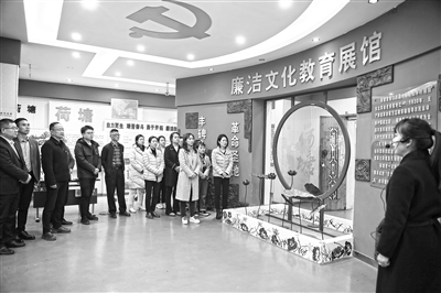 江西省景德鎮(zhèn)市紀委監(jiān)委充分挖掘本土廉潔文化資源,推動建立生動的廉潔教育實體課堂,著力鍛造忠誠干凈擔當、敢于善于斗爭的紀檢監(jiān)察鐵軍。圖為該市紀委監(jiān)委干部參觀景德鎮(zhèn)荷塘廉潔文化教育基地,接受廉政教育。歐陽晨君 攝