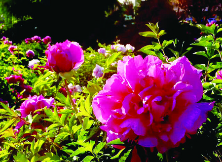 臨夏市濱河路綠化帶內(nèi)牡丹盛開