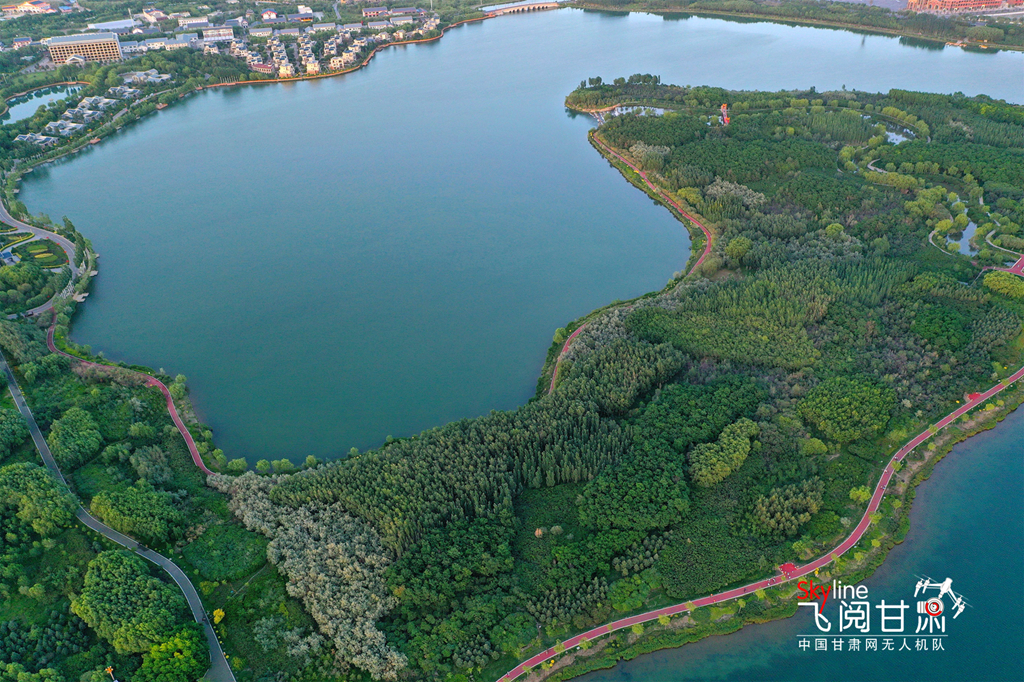 近日,夕陽下的甘肅省張掖市蘆水灣生態(tài)景區(qū)湖水湛藍,草木翠綠,景色宜人。蘆水灣生態(tài)景區(qū)位于張掖濱河新區(qū),占地4500畝,其中水域面積2260畝,綠化林地1790畝,2018年評為國家4A級景區(qū),被譽為張掖城市的“后花園”和“加濕器”。