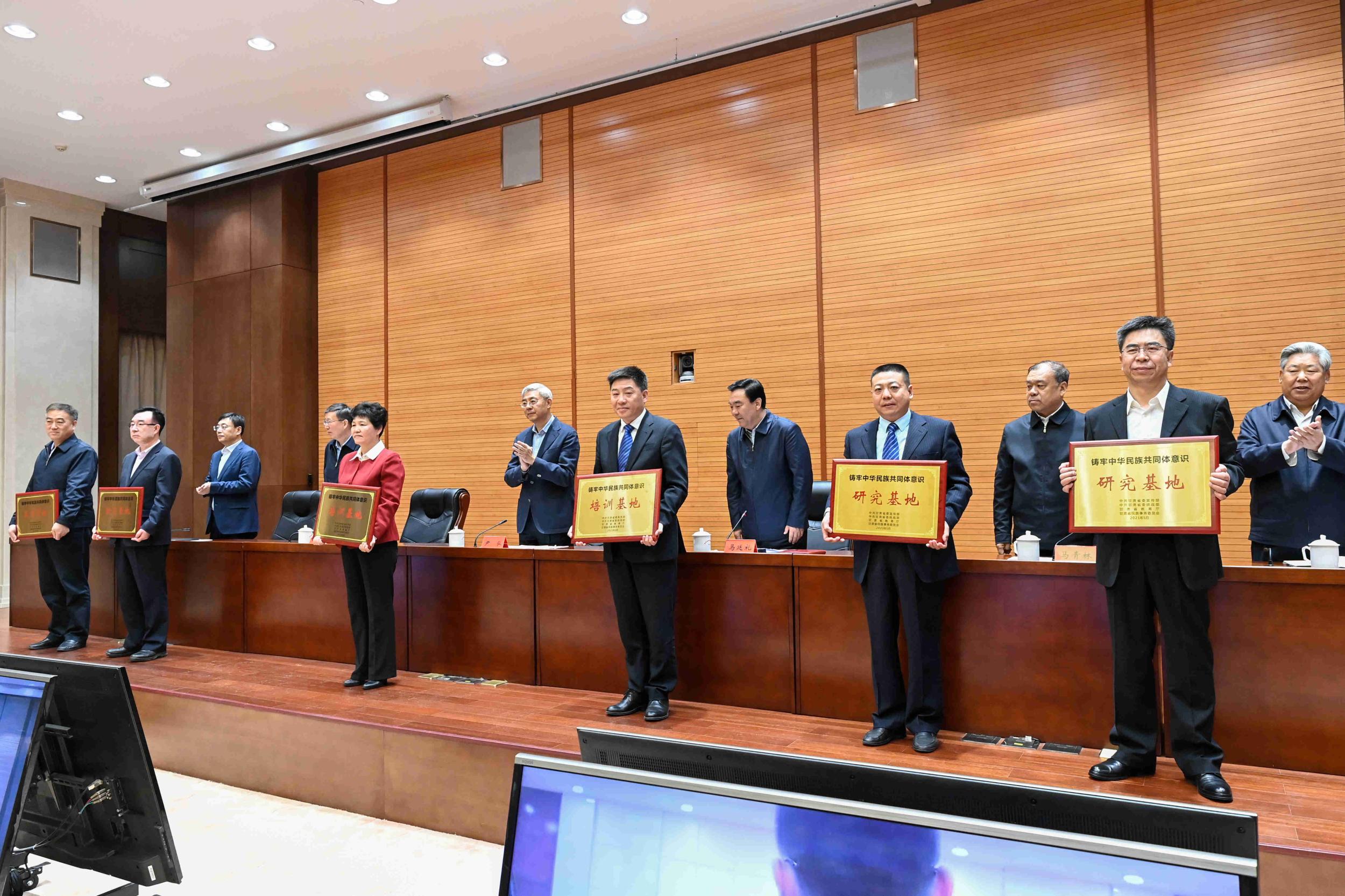 會上,為首批甘肅省鑄牢中華民族共同體意識教育基地、培訓基地和研究基地授牌。