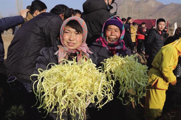 “今年地頭價(jià)每斤15元,這還是頭一回。”勞動(dòng)間隙,村民們議論著韭黃的價(jià)格,隨后把一筐筐金燦燦的韭黃放在商販的稱(chēng)上,接著到手的便是一疊疊鈔票。“給韭黃抖土感覺(jué)就像數(shù)錢(qián)一樣,嘿嘿,麥草下的‘黃金’今年又豐收了。”村民們你一言我一語(yǔ),爽朗的笑聲回蕩在冬日的余暉里。