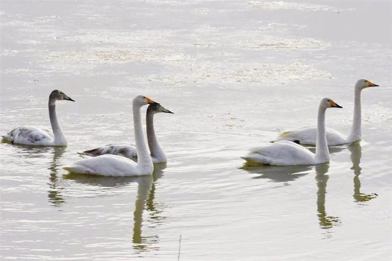 中國(guó)甘肅網(wǎng)1月7日訊 據(jù)蘭州日?qǐng)?bào)報(bào)道(記者 董永前 攝)最近幾天,西固區(qū)達(dá)川鎮(zhèn)三江口水域,成群天鵝在這里“落戶安家”,成為當(dāng)?shù)匾患恍〉男侣?,吸引不少市民和游客前?lái)觀賞。