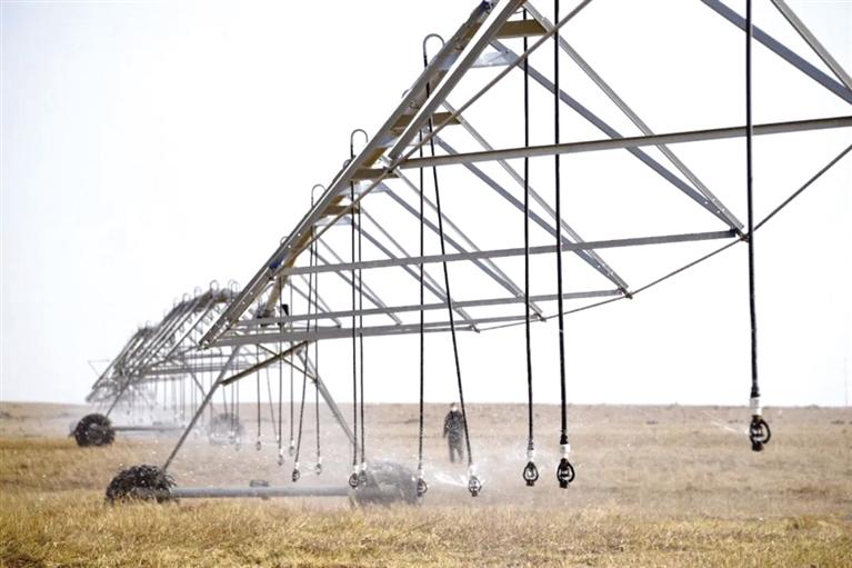 在農投集團現代牧草休閑示范園項目,平整一新的2.3萬畝土地上,3組大型噴灌設備已經投入緊張的工作中,隨著工作人員啟動設備,噴灌機所過之處土地一片濕潤,空氣中充滿了泥土的清新。據現場負責人介紹,連續(xù)幾日,他們都在緊鑼密鼓開展春灌工作,利用大型噴灌設備,不僅實現了水資源的高效利用,而且減少了人力投入,工作效率更高。