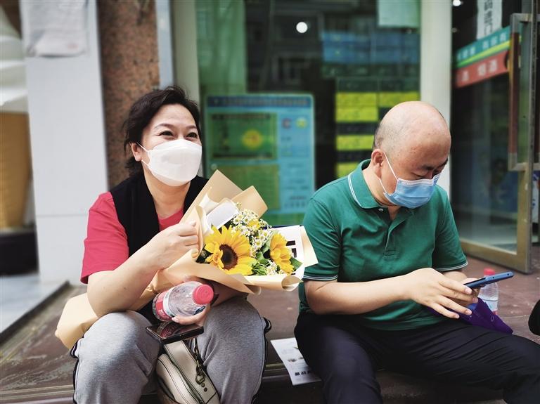 記者在等待的家長群里來回穿梭,發(fā)現(xiàn)給孩子送鮮花的家長可真不少,上前攀談,手捧向日葵的媽媽爽朗大方,她向記者解釋了送孩子向日葵的寓意:“我家的孩子是女孩,是蘭州一中的學(xué)生,我希望她考個(gè)好成績。向日葵的寓意就是‘一舉奪魁’。我們很緊張但是不敢表露出來,不能把這種情緒傳導(dǎo)給孩子。送她花,就是為了讓她心情好一些。”